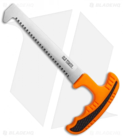 The Blaze 4-Piece Hunting Kit from Old Timer includes four outdoor tools for your next hunting trip: A filet knife, a fixed blade knife, a guthook fixed blade knife, and a hand saw. Each is made with a durable stainless steel blade and blaze orange plastic handles with black rubber inserts. The kit comes in a hard plastic case with a handle for easy transportation.