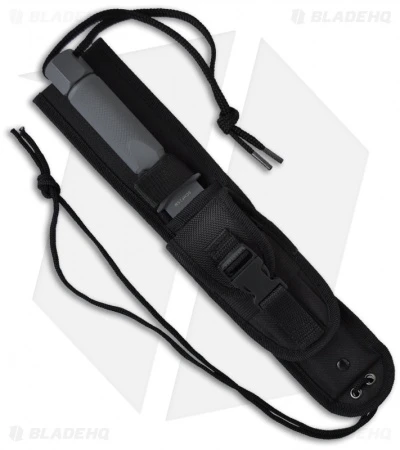 The Schrade Extreme Survival SCHF2SM fixed blade knife is a great knife with latent utility. It features a single piece blade and handle made from 1070 stainless steel with a grey finish. The clip point blade and handle are gray finished. The handle has diamond pattern knurling for a confident grip. Unscrewing the handle end reveals a driver tool with flat head (3/32″, 5/32″, 3/16″), Phillips (PH#0), Torx (10), and Allen (5/64″) tips. The O-ring keeps moisture out of the hollow handle when tightened appropriately. Includes a ballistic nylon sheath.