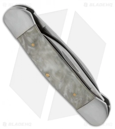 Called a “canoe” knife because of the canoe shape of the handle, you’ll use this smart-looking two blade pocket knife in lots of other places than your boat. The 3Cr13MoV stainless steel construction makes this a tough and durable knife. The two drop point blades give you versatility and the ability to tackle tasks of different sizes. The cracked ice celluloid handles harken back to another era when paddling your canoe and strumming your ukulele were favorite pastimes. This light weight pocket knife is small enough to tuck into a pocket or purse for convenience.