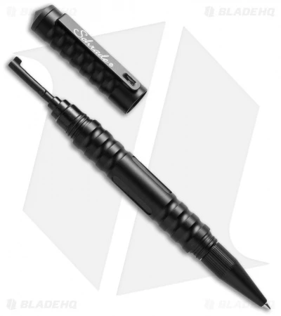 Made for professionals in law enforcement, the black Schrade Pen 10 is equipped with a handcuff key and push pin. It has a sturdy, lightweight CNC machined aluminum body with a ribbed grip and threaded cap that includes a glass breaker tip and stainless steel pocket clip. The SCPEN10 has a MiniStar ink cartridge and twist tip mechanism.